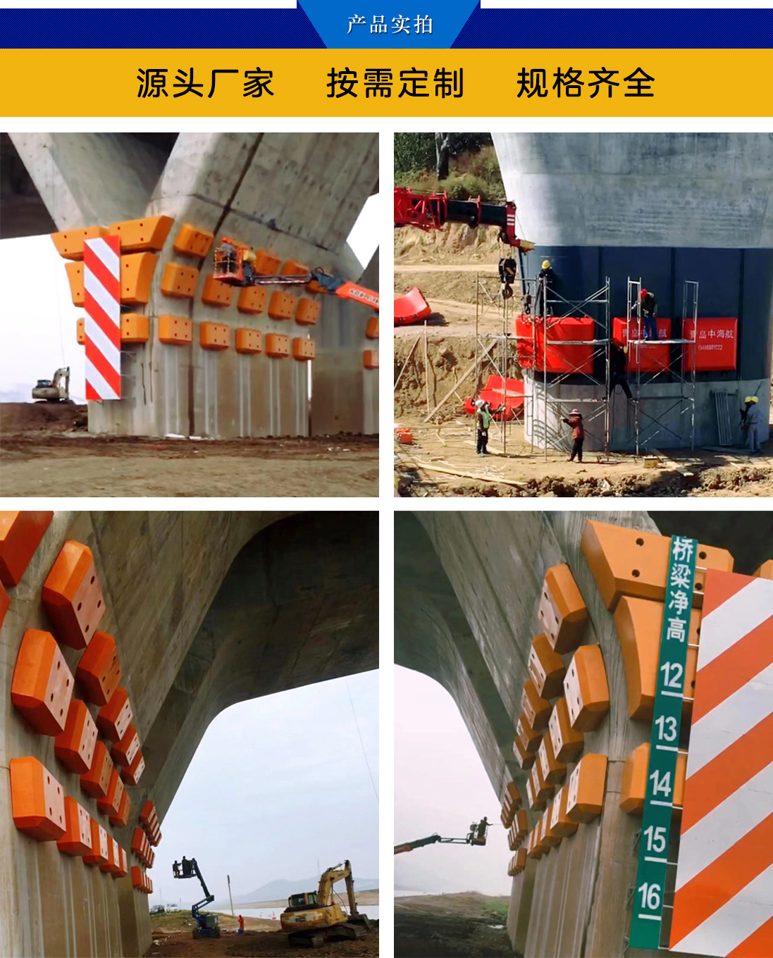 固定式复合材料桥梁糖心vlog设施能紧密贴合在桥墩、承台表面,以柔克刚、刚柔并济吸收动能,保护桥梁、船舶及人员的安全。
